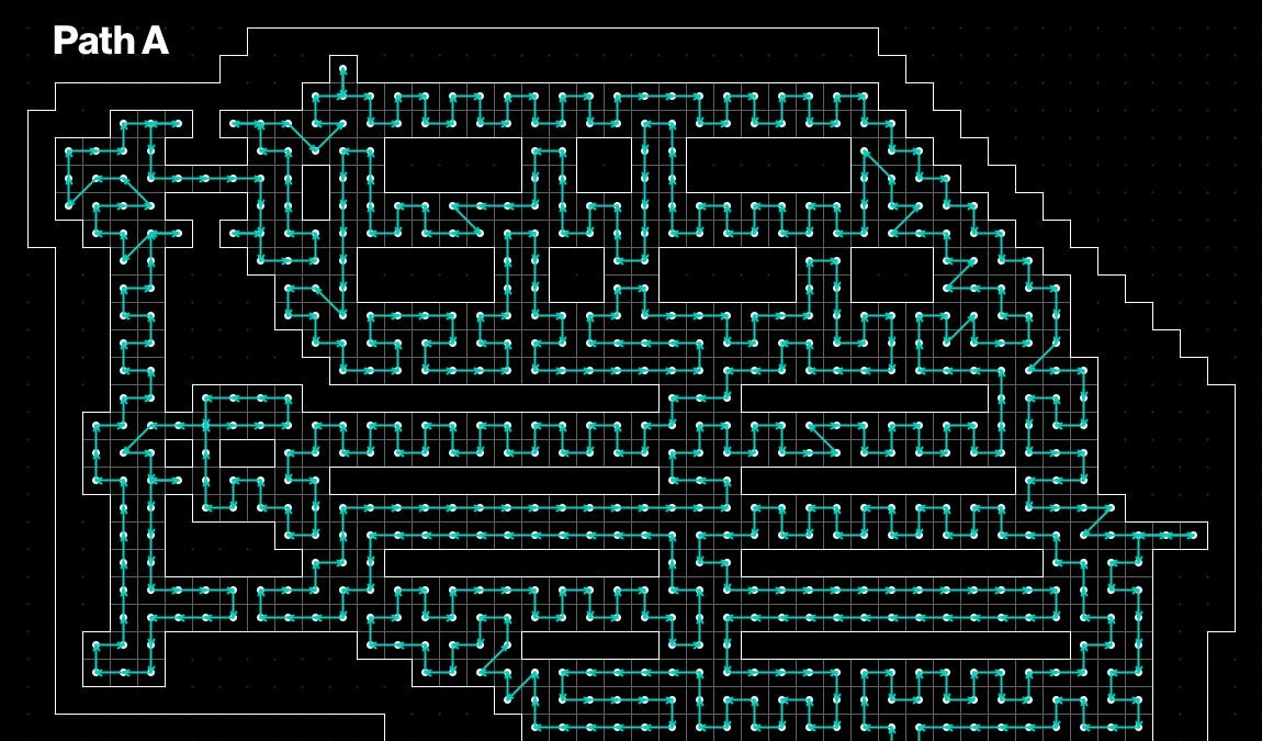 After letting it run for a while, I got my first “optimized” path. Here’s what it came up with: