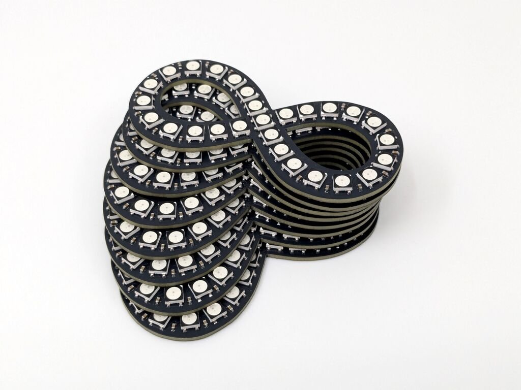 So, this thought came to my mind, Wouldn’t it be great to have a physical version of the neurodiversity rainbow infinity symbol? Like a little animated thing that could decorate your desk or perhaps be worn as a badge. I haven’t found anyone yet who has made such a thing, so I made it myself. If you want to build one, the board design, code, and additional features are available on GitHub. If there seems to be a slight glitch in sourcing the boards and components, I may even have extra material lying around. The board consists of 27 WS2812B addressable RGB LEDs powered by an ATtiny412. A button on the back cycles through different colors, gradients, animation speeds, patterns, and brightness levels.
